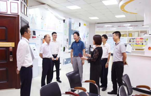 活动期间,中行领导一行在驰通达集团董事长万腾驰陪同下,实地参观考察了驰通达党建文化建设长廊和智慧安全防护演示厅,通过学习观摩与双向交流,进一步统一了双方党员干部的思想认识,更加深刻理解星空体育·星空官方网站的内涵。中国银行深圳宝安支行钟俊副行长对驰通达党支部建设成果给予了充分肯定,对驰通达很早就获得深圳市、区、街道“两新工委先进基层党组织、街道先进基层党组织”等众多荣誉表示赞赏。驰通达集团董事长万腾驰表示,驰通达党支部已成为教育党员职工“争先创优”的重要阵地,驰通达始终坚持“把党员培养成骨干、把骨干发展为党员”的用人理念,让驰通达党员和企业员工时刻感受到党的温暖。此举与中国银行深圳新城支行党支部的理念不谋而合,作为党建结对共建单位,双方约定将以此次联创为契机,加强党组织与党员沟通交流,寻求价值认同、资源共享、优势互补,促进银企构建战略伙伴关系,在国外疫情防控持续的情况下,对结对共建单位给予授信额度支持,有效服务银企转型创新发展,实现合作共赢,进一步夯实党建工作基础。